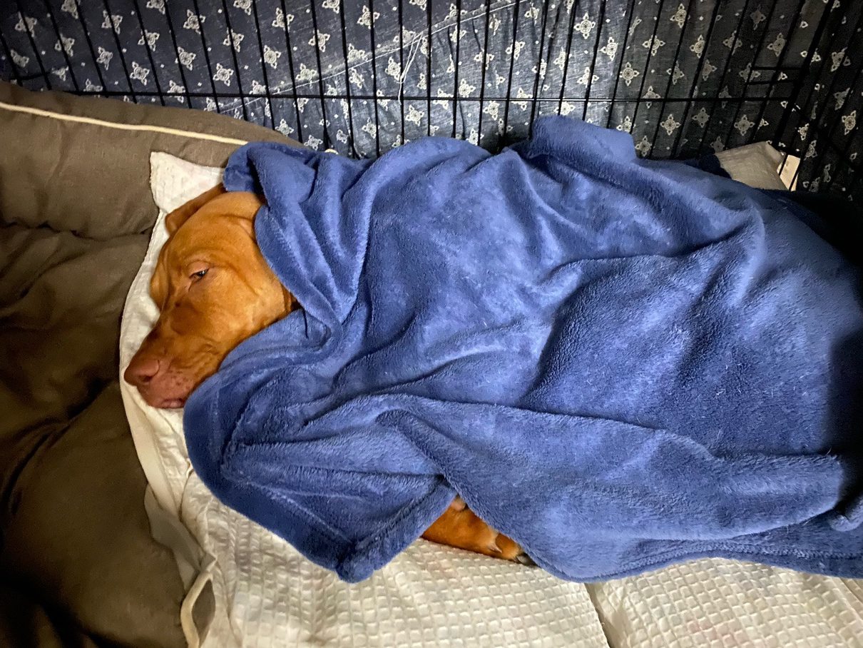 At night I alway tuck him in with his blue blanket. He looks forward to it and when I say the words, he will get into a nice position and wait for me to cover him and wish him a good night.
