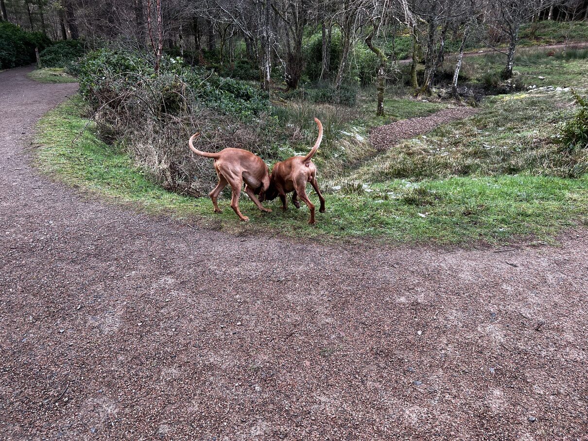 Brodie and Fergus are quite a handful when they get together as all they seem to do is play fight the whole time, and we were a bit apprehensive about a week of their boisterous behaviour. The doodles aren’t too impressed either, and they constantly bark at them if they come near during their play.